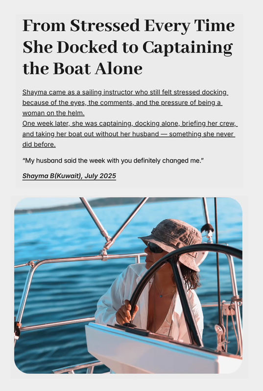 Even if you don’t feel ready to “be the captain,” this experience changes the way you see sailing — and yourself.
